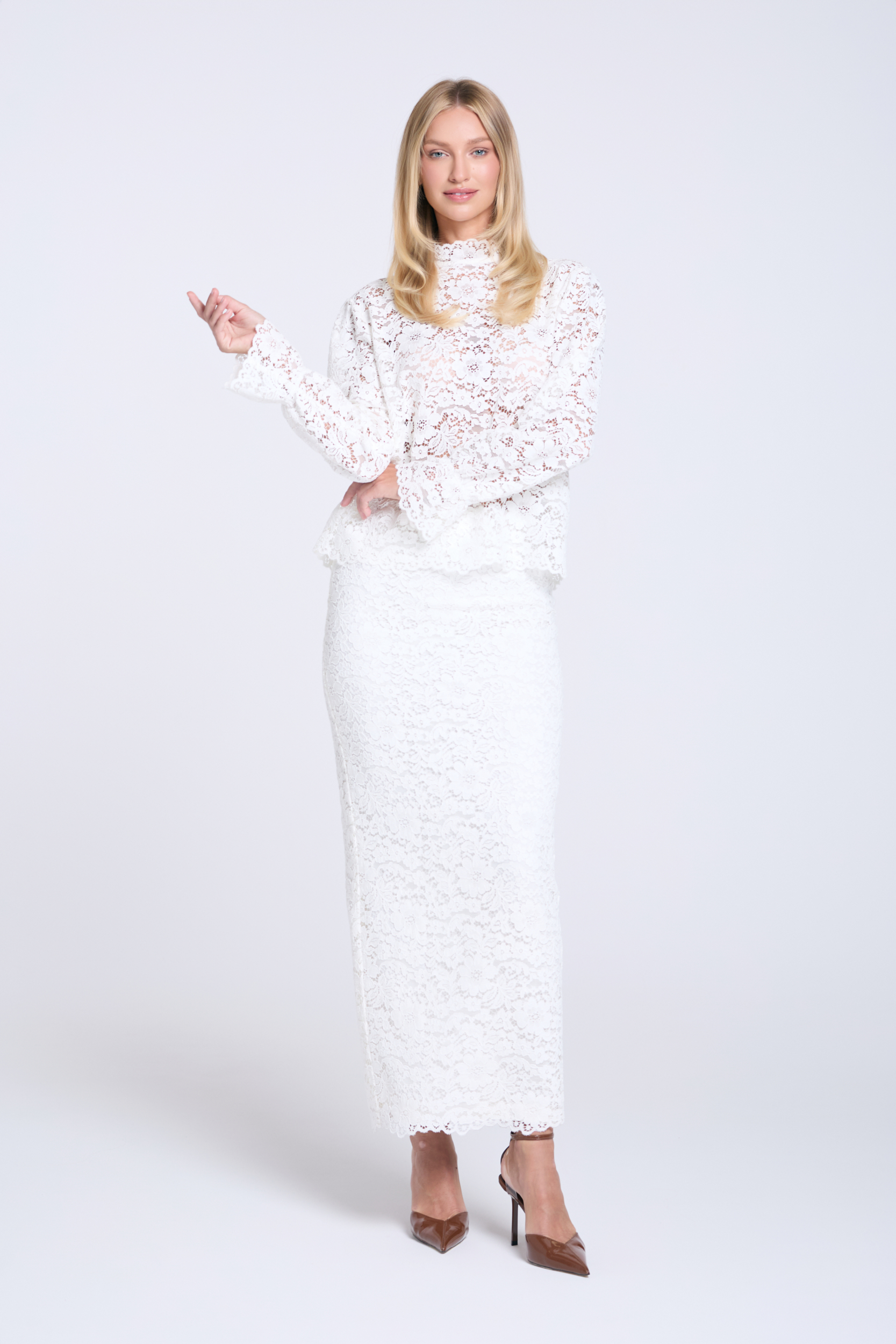 -  AW2025/26, Kobieta, Komplety, Spódnice  -  Spódnica koronkowa długa off white Marlen